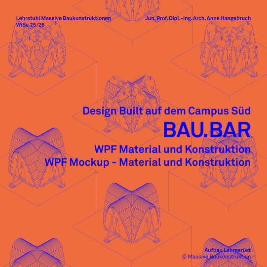 Das Lehr- und Forschungsprojekt Pavillon aus Stein wurde in den letzten Semestern in sukzessiven Lehrveranstaltungen entwickelt und gemeinsam mit Studierenden realisiert. Im ersten Seminar MOCKUP.02 - STEIN wurde im Rahmen eines Studierendenwettbewerbs ein Kiosk aus Stein für den Campus Süd entworfen und das Siegerprojekt als materialechtes Modell im Maßstab 1:5 gebaut. Im Anschluss wurde der Siegerentwurf in eine Werkplanung übersetzt. Für die Realisierung des Pavillons wurde im Sommersemester 2024 das Lehrgerüst in einem Wahlpflichtfach entworfen und mit Hilfe Studierender und der Modellbauwerkstatt umgesetzt. Im November 2024 wurde der Pavillon realisiert.